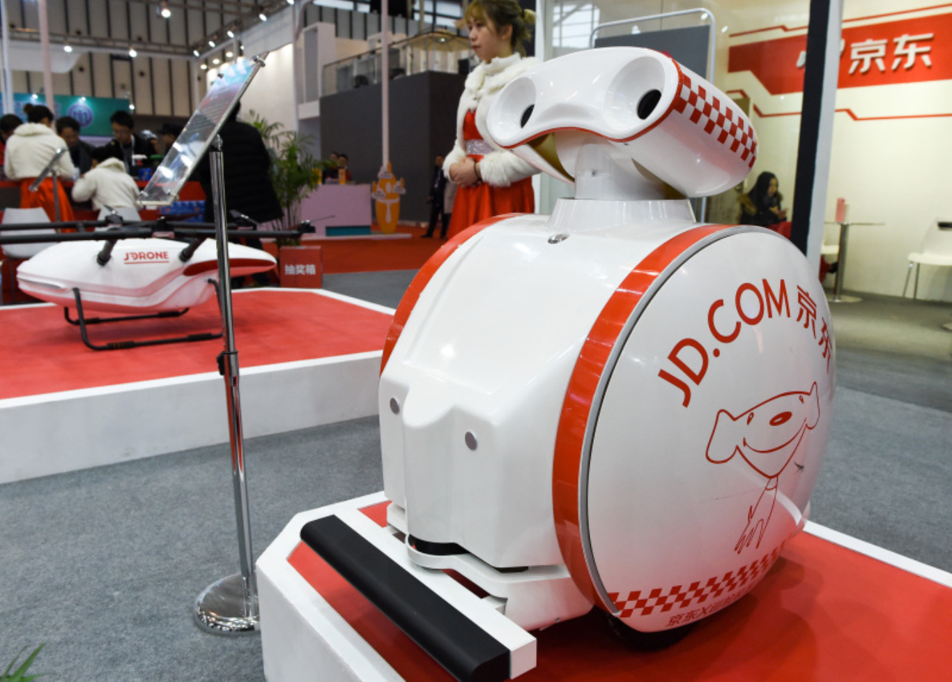 倉庫巡邏機器(qi)人在2017世界智(zhi)能制(zhi)造大會(hui)展示區京東展位進(jin)行展示。
