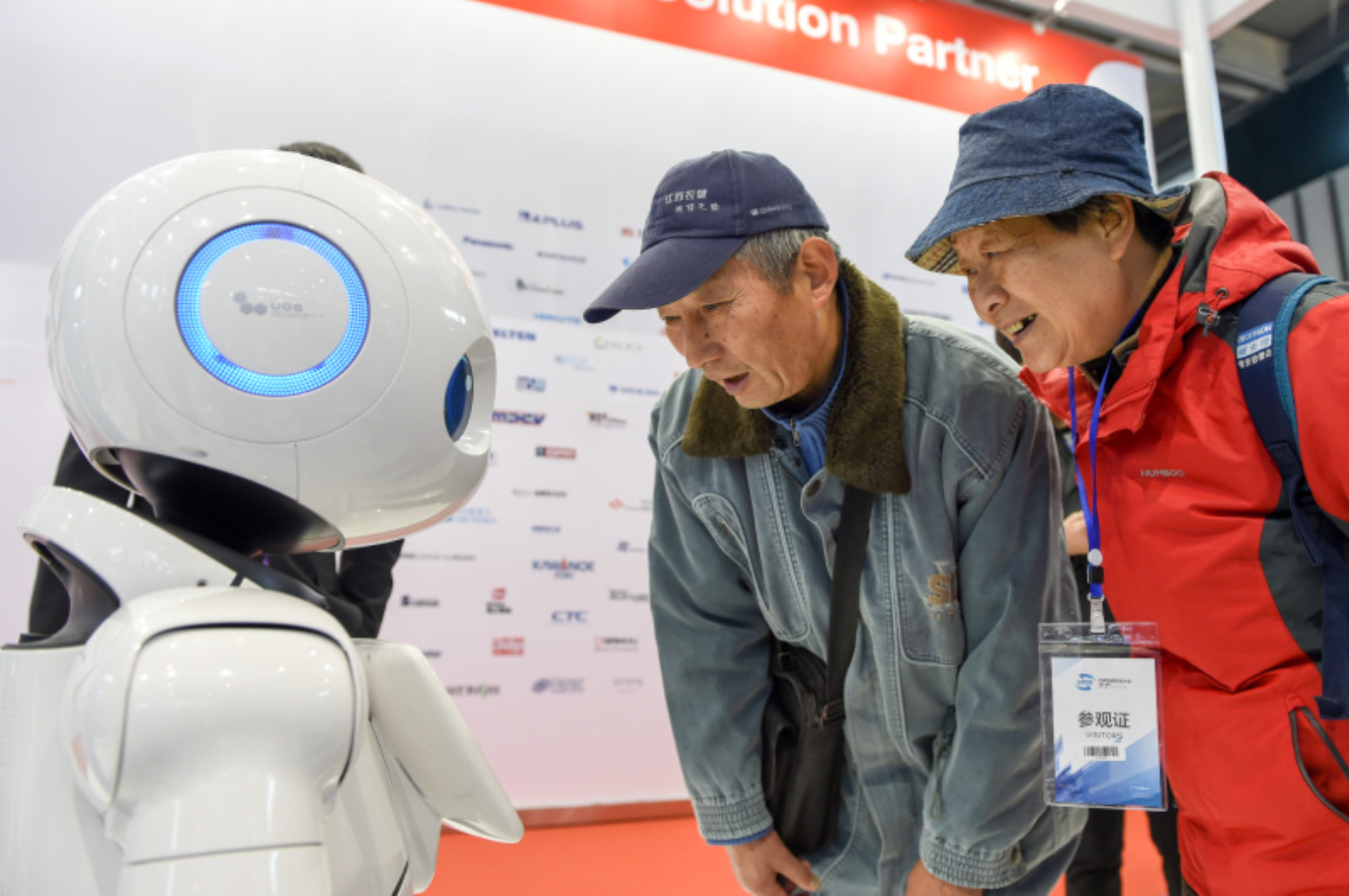IBM展(zhan)位(wei)的(de)(de)智能互動(dong)機器人也(ye)是萌(meng)萌(meng)噠,不過小編的(de)(de)目光卻(que)緊(jin)緊(jin)的(de)(de)落在(zai)這對老人身上,活活的(de)(de)被虐(nve)了一把,單(dan)身狗的(de)(de)悲哀,你們懂么~