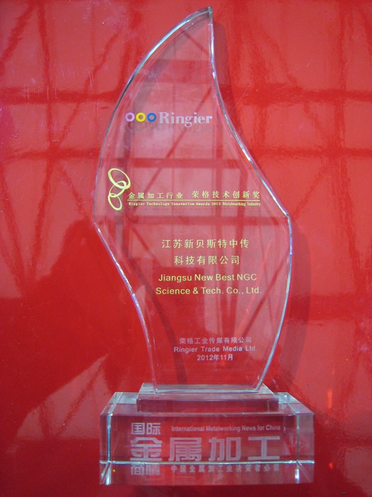 2012年(nian)11月8日,“2012金(jin)屬(shu)加工行(xing)(xing)業(ye)-榮格技術創新獎(jiang)”頒(ban)獎(jiang)典(dian)禮在(zai)上海浦東淳大萬麗酒店隆重(zhong)舉行(xing)(xing)。百余位獲(huo)獎(jiang)企業(ye)高層(ceng)(ceng)代表、榮格及漢諾威的(de)高層(ceng)(ceng)、部分評委專家、行(xing)(xing)業(ye)主流媒體(ti)等業(ye)內人士(shi)齊(qi)聚頒(ban)獎(jiang)典(dian)禮現場,共同分享和(he)見證創新產品/技術給中國金(jin)屬(shu)加工行(xing)(xing)業(ye)帶來的(de)深度(du)變化。江蘇新貝斯特中傳總裁(cai)董曉(xiao)軍(jun)親赴會場,接受了此次(ci)頒(ban)獎(jiang),并作為獲(huo)獎(jiang)企業(ye)代表進行(xing)(xing)發言。
