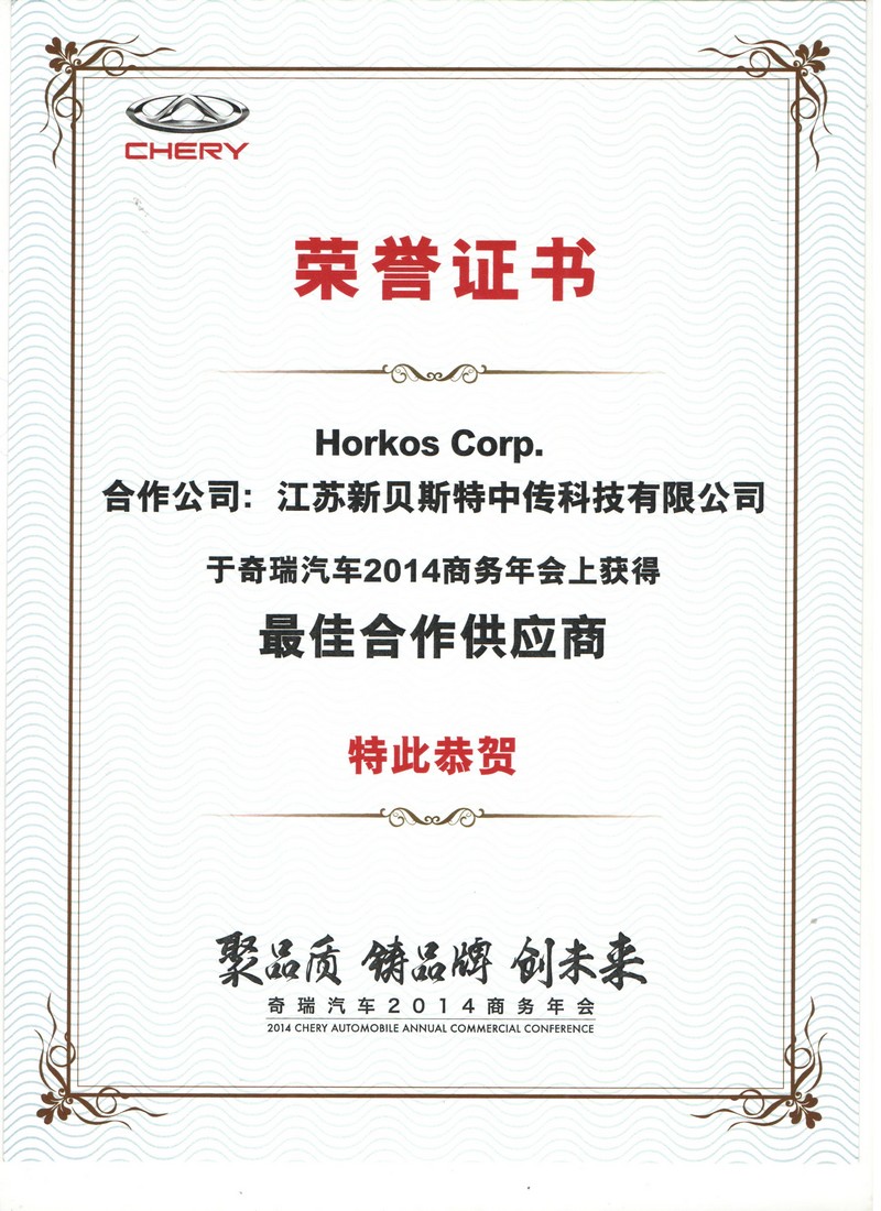 在2月底奇瑞(rui)汽車(che)廣州(zhou)供應商(shang)大會上,新貝(bei)斯特榮(rong)獲最佳(jia)供應商(shang)殊榮(rong)。